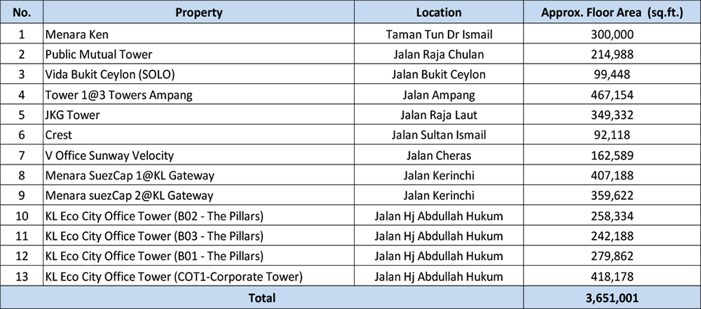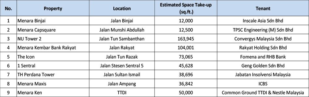 Table 3: Notable Office Leasing in Kuala Lumpur